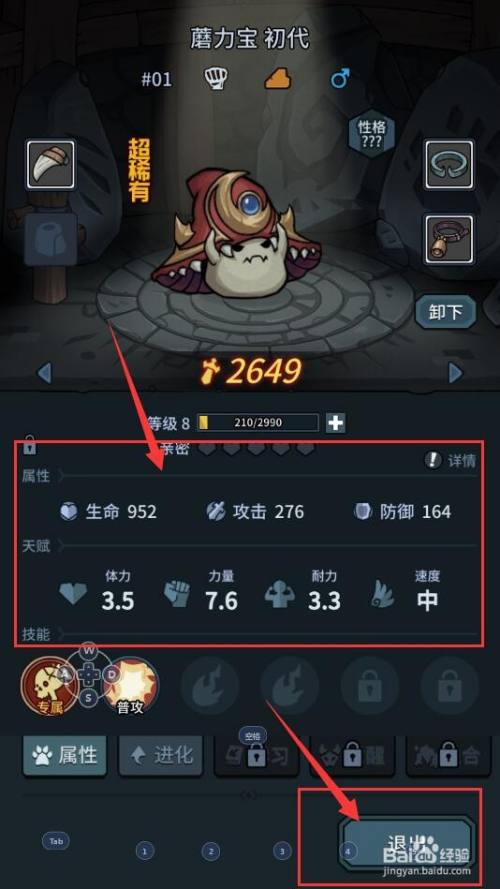 接下来,我们就能查看到该契约兽的属性的具体信息了,这时,我们点击该界面右下角的【退出】按钮;