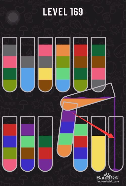打开游戏进入169关,如图所示将黄色液体倒入空的试管中。