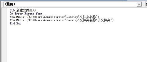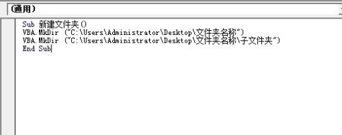 VBA.MkDir ("C:\Users\Administrator\Desktop\文件夹名称\子文件夹")