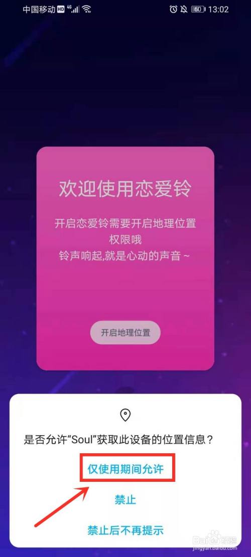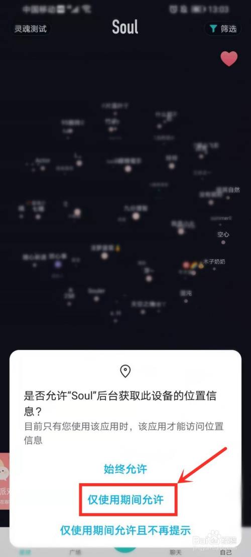 在弹出的窗口中点击【仅利用时代许可】,即可开启地舆位置。