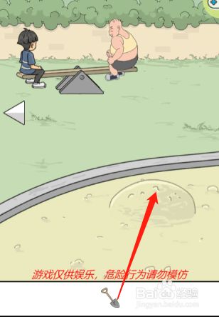 工具/原料联想小新13Windows10方式/步骤1首先点击图示箭头切换参加景二2然后点击拿起沙堆里面的铲子3然后利用铲子去挖旁边的沙堆(挖三次,把宝箱挖出来)4然后打开宝箱拿走里面的辣条5接着把辣条给小胖子,这样小胖子就会被他妈妈带走了6然后我们只需要坐上跷跷板的另一侧就可以了END