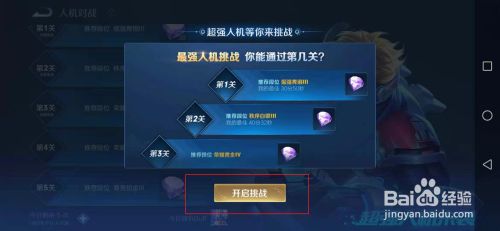 工具/原料华为Nova 8 proEMUI 11.0.0.134王者荣耀v3.63.1.7方式/步骤1点击打开王者荣耀app进入游戏本家儿页面后点击下方对战。12点击5V5王者峡谷。3点击人机。4点击左下方的人机闯关。5点击开启挑战。6在这里最高只能从第5关起头挑战获得憬悟值解锁,每日有5次挑战机遇,挑战当作功当前关卡后会主动解锁下一关卡。END