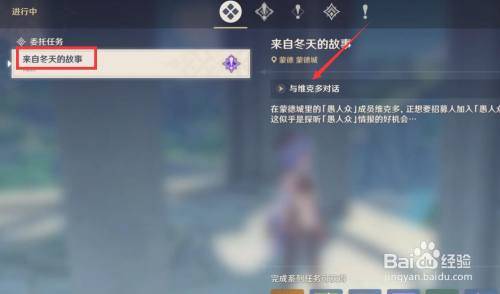 对话中会呈现三个选项,每一个选项都对应一个使命,我们需要将这三个选项都选择一遍,把对应的使命完当作。即可完当作来自冬天的故事使命