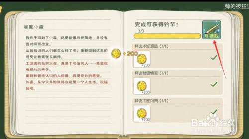 工具/原料小米手机9MIUI12.0.6小森糊口1.0.6方式/步骤1首先进入小森游戏。 12要想获得钓竿,必需完当作以下三个使命。3依次完当作:拜访源造,拜访成衣匠慎吾和拜访石头匠。4使命完当作后点击领取,即可获得钓竿。END