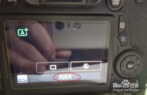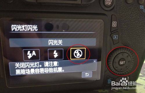 按【右偏向键】选中【封闭闪光】的图标,点击【SET】确定。