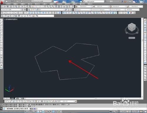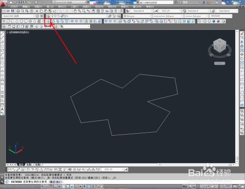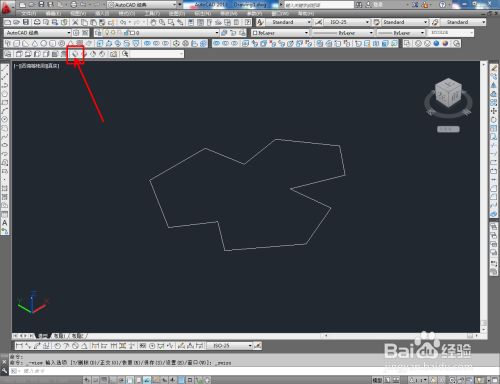 点击视图东西栏中的【俯视】切换到俯视图,点击【多段线东西】绘制一个自界说图案;