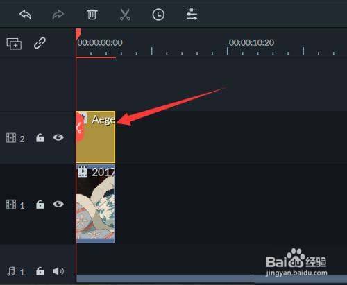 5、将其拖入到素材的上方轨道。