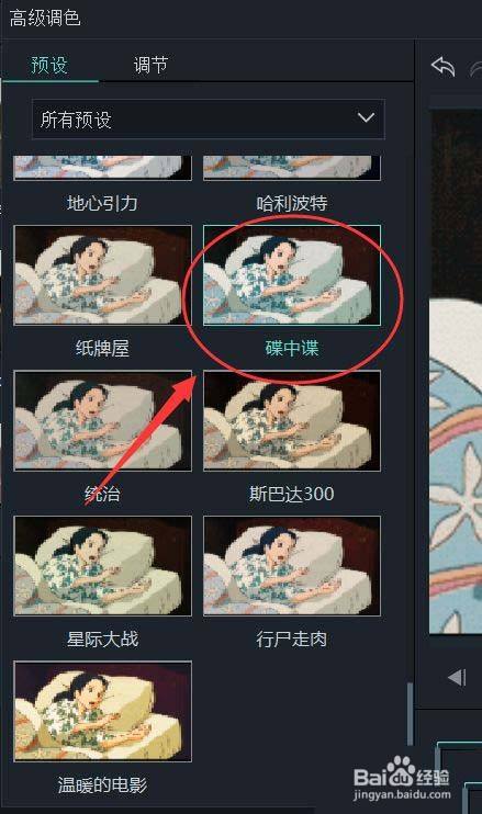 9、点击【预设】中的【碟中谍】即可。