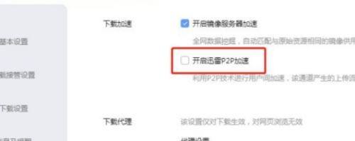 可以看到右边有一个【开启迅雷P2P加快】勾选项,默认是不勾选的