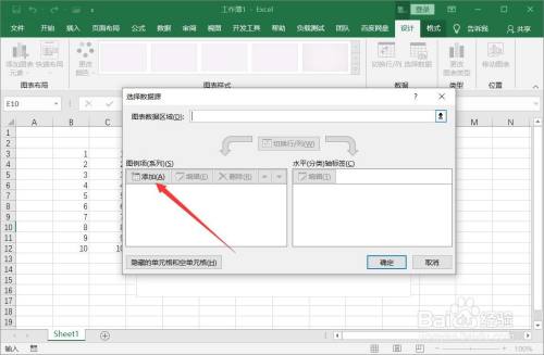 点击X轴和Y轴系列值后面的箭头选择数据列,点击【确定】。