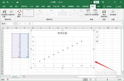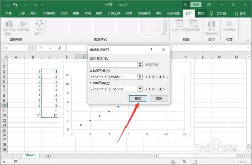 点击选择数据中的【确定】即可获得设置了xy的散点图。
