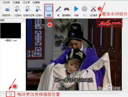 2、点击选择,将去除水印的边框移动到水印地点区域,调整为合适大小