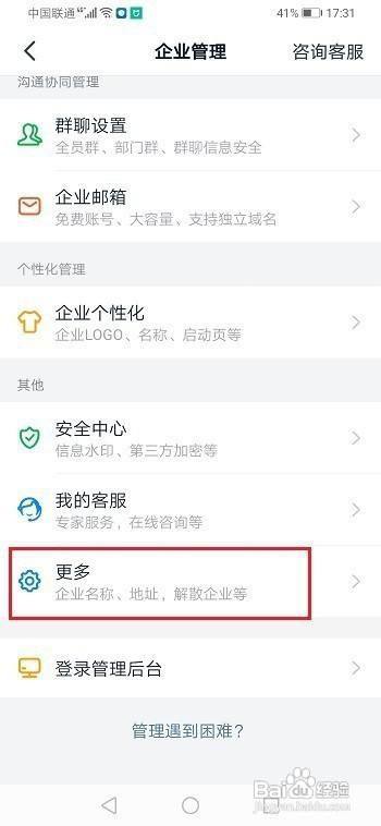 第二步:在企业办理界面,点击更多
