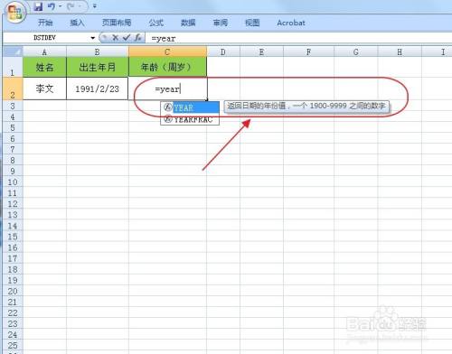 这里我们需要用到YEAR函数,该函数可以返回日期的年份值,好比日期1991/1/20,利用YEAR函数就会返回年份值1991。