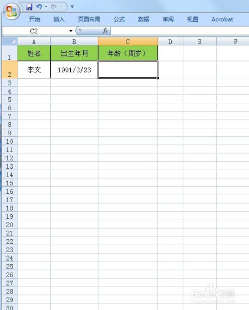 首先打开一篇Excel表格,如下图所示,出生年代信息已经编纂好了,此刻就是要按照出生年代信息主动计较春秋,这里计较的是周岁。