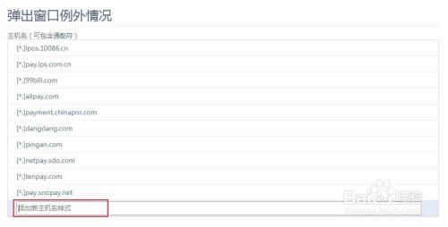 4、点击之后会弹出如下图所示的窗口,在窗口的输入框中按照提醒的格局输入不需要阻挡的网址就可以。