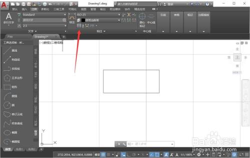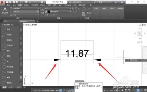 绘制一个矩形,点击【注释】-【线性】,标注箭头默认在里面。
