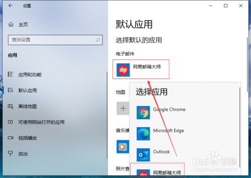 在“选择默认的应用”中设置默认应用,好比:Web浏览器设置为“Microsoft Edge”。