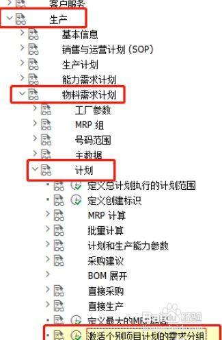 点击'出产',睁开子项,选择'物料需求打算' —>'打算' —>'激活个体项目打算的需求分组',点击执行