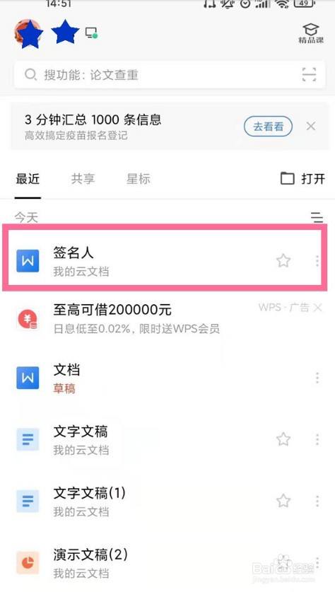 1、打开wps office,找到需要签名的文件并打开。