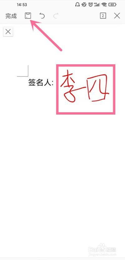6、在文档对应位置签名,然后点击【保留】图标即可。