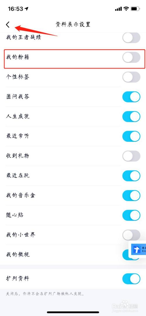 选择封闭我的粉籍展示,设置完当作后返回顾页即可。