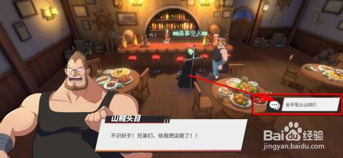 喝完三杯酒后,山贼头子会进来买酒,可是不给钱,选择【出手阻止山贼们】。