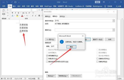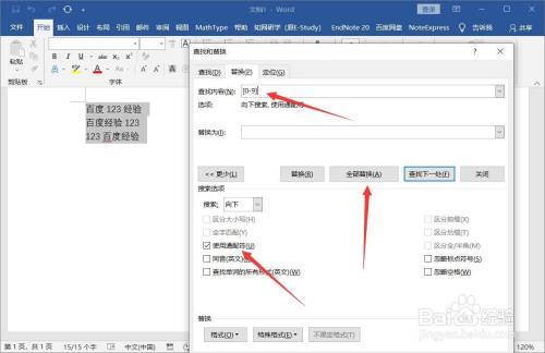 查找内容为[0-9],勾选【利用通配符】,替代内容不填,点击【全数替代】即可将所有的数字删除。
