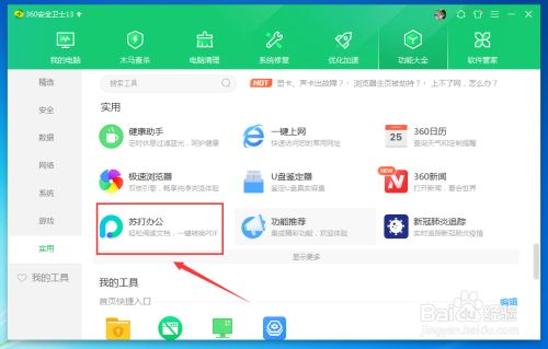 打开“360安全卫士”软件,点击“功能大全”按钮。