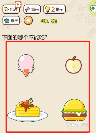 工具/原料联想小新13window10方式/步骤1这一关是要求我们找出不克不及吃的2然后看一下给出来的工具3第一眼看上去貌似都是可以吃的工具4可是细心不雅察一下就会发现不是如斯,蛋糕下面有一个盘子45盘子不是可以吃的工具,点击选择盘子作为谜底6谜底准确,顺遂过关END
