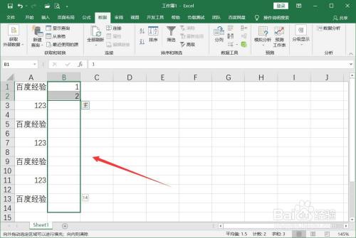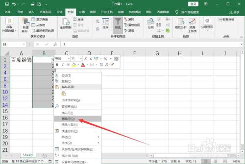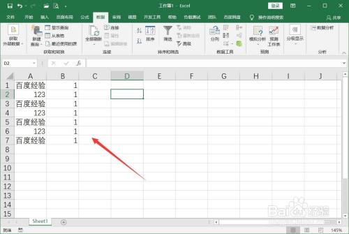 打开excel,在第一列隔行输入内容,以删除空行为例。