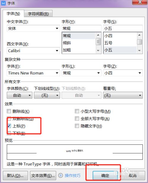 勾选上标,点击确定。
