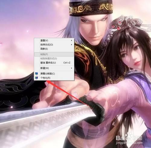 鼠标在桌面右击选择个性化