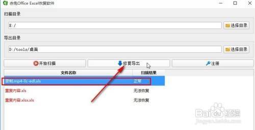 6、最后会显示扫描到的一些文件信息,我们选中扫描成果中为正常的那一个文件,点击修复导出按钮即可,若是显示无法恢复的话就暗示不克不及进行恢复了。