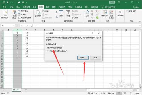 设置排序依据是B列的单位格值,排序方式降序,点击【确定】即可。