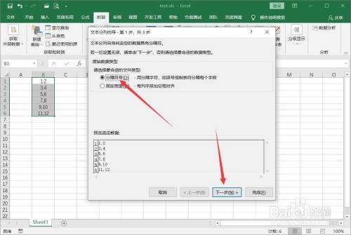 设置排列依据是【分隔符号】,勾选逗号,点击【完当作】。