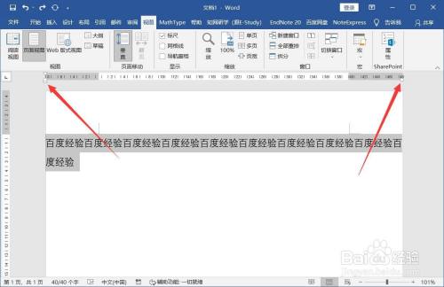 在顶部标尺上滑动摆布双方的滑块,将文字的位置调整到合适的位置即可。