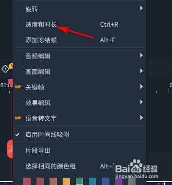 然后右击视频点击速度与时长。