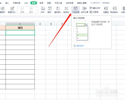 点击“下拉列表”选项。