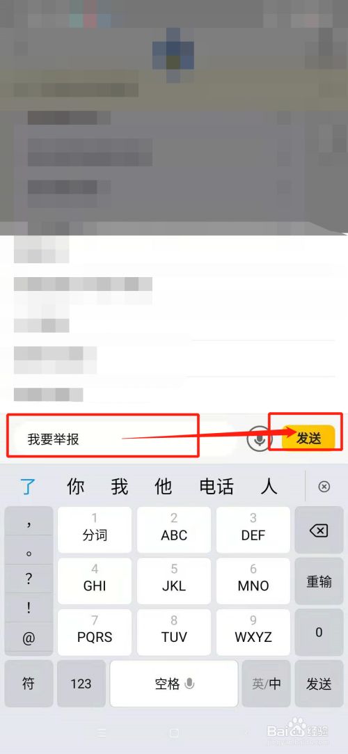 在框内输入“我要举报”,在右侧点击“发送”,就会获得解决法子。