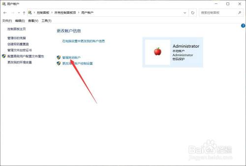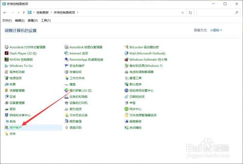 在节制面板中点击【用户帐户】。