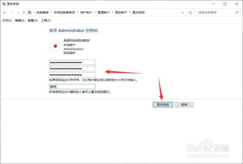 输入本来的密码,输入两次新密码,注重密码中只设置包含小写字母和数字即可,点击【更改密码】就不会提醒有问题了。