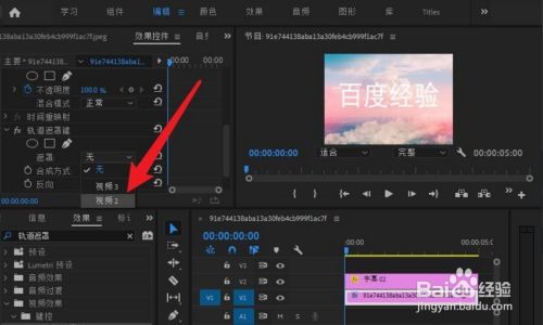 接着将字幕拖动至时候轴上,选择V1轨道,添加轨道遮罩键结果。
