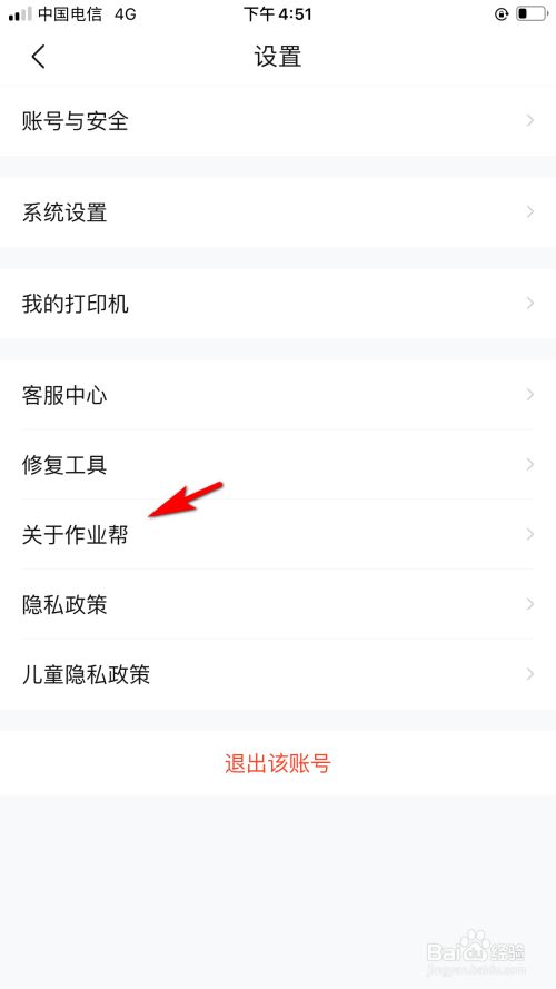 在设置中,点击关于功课帮的选项。