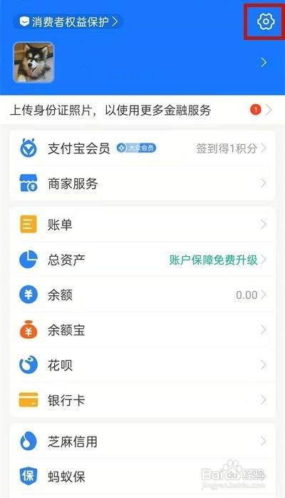 首先打开支付宝,点击右下角我的,点击设置选项。