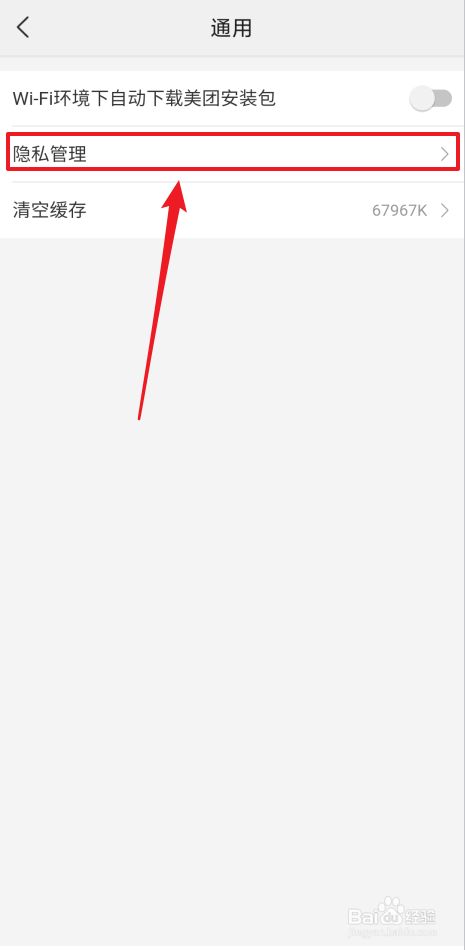 在“通用”界面,点击“隐私办理”地点行。见下图