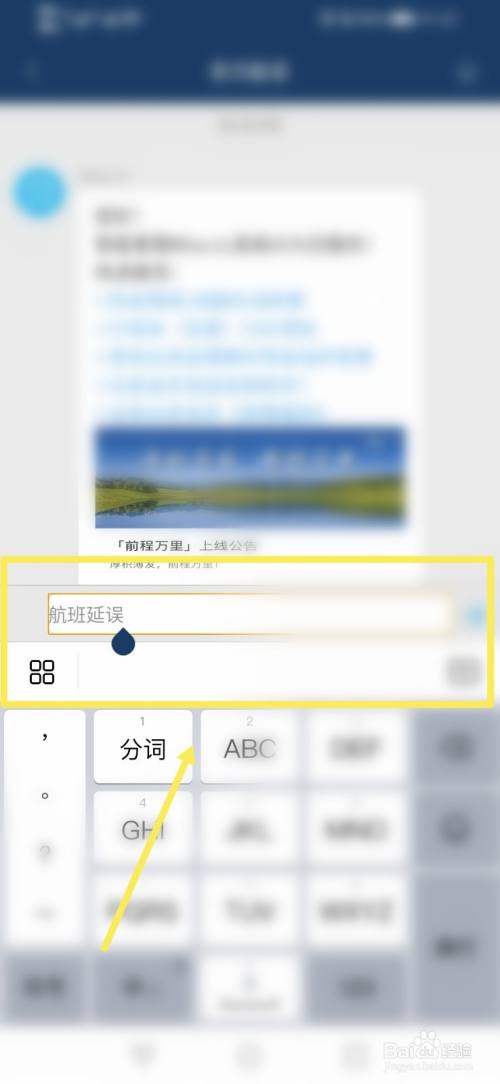 进入之后,我们可以在客服对话框中输入航班耽搁,再点击发送。