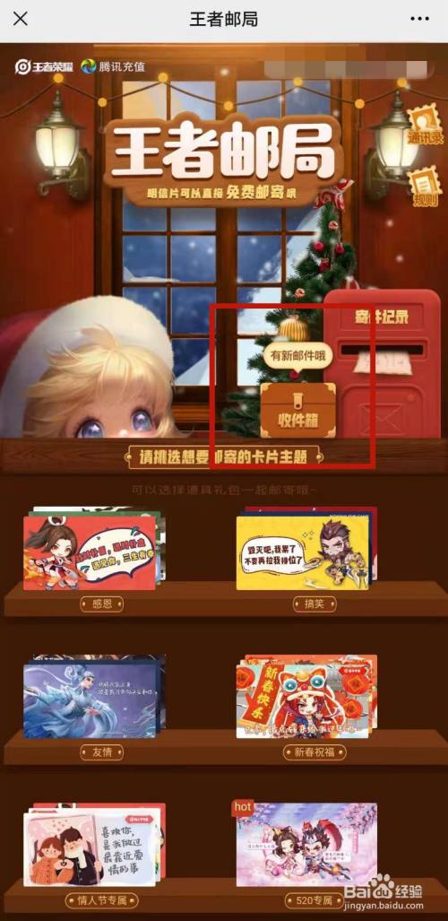 工具/原料华为荣耀20magic4.0.0微信8.0.6王者荣耀王者邮局腾讯充值公家号方式/步骤1首先打开微信2点击进入微信充值公家号3点击进入王者荣耀专区4点击寄卡片5进入王者邮局点击收件箱56最后即可查看邮局收件END注重事项但愿对您有所帮忙
