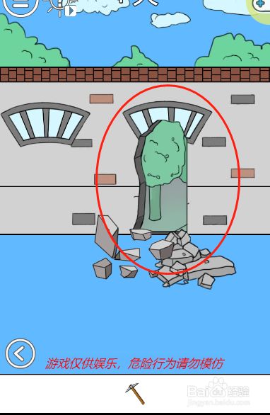 工具/原料联想小新13window10方式/步骤1首先点击黉舍大门右侧的春联2然后点击拿到藏在春联后面的缺口里的镐子3接着点击屏幕右下角的按钮切换到右边的场景4接着利用镐子敲碎墙边的石头5然后利用稿子操纵墙壁上面的裂痕粉碎墙壁56最后从墙壁的缺口处进入黉舍即可顺遂过关啦END