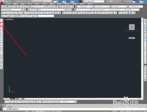 点击视图东西栏中的【前视】切换到前视图,点击【多段线东西】按图示绘制出一个多段线图案;